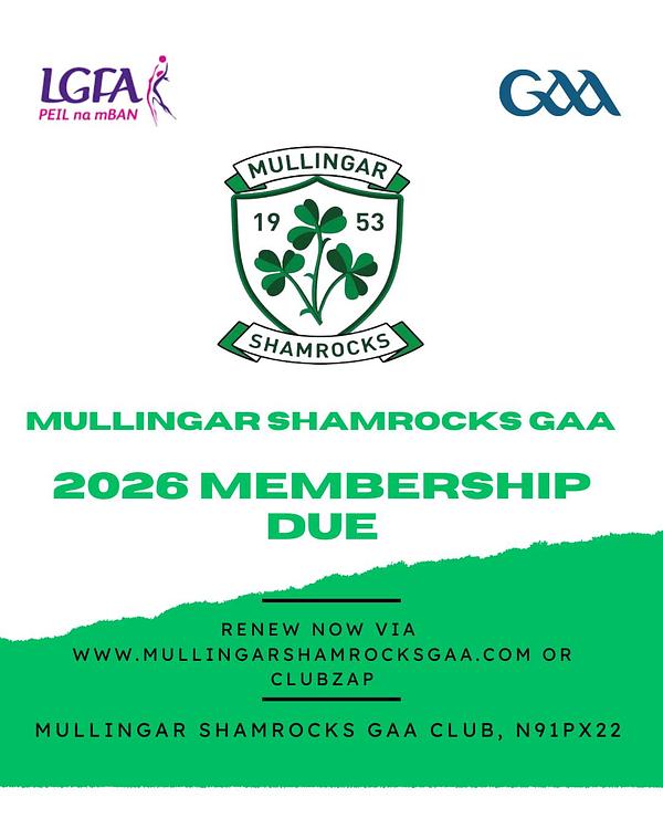 Renew by going to www.mullingarshamrocksgaa.com and take it from there. Alternatively renew using the Mullingar Shamrocks ClubZap.