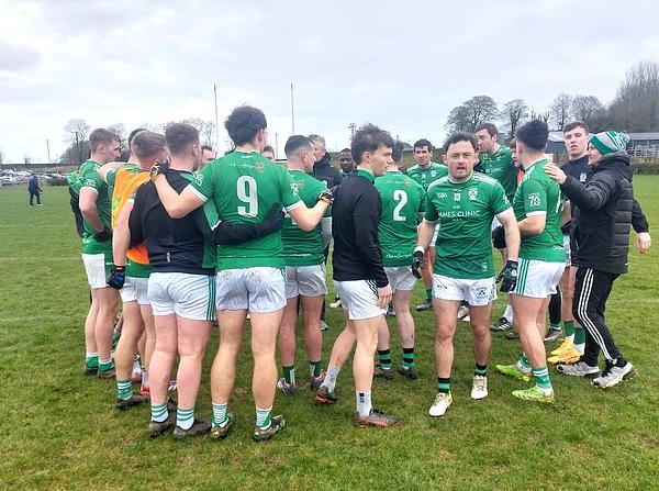 The understrength home team enjoyed the advantage of a strong wind and opened the scoring with a massive long range point from Sean Clinton that raised an orange flag. A four-minute Shamrocks vignette followed that had a significant impact on the final result. A free from the sideline was converted to a tap over free in front of goal from Dean Moore after a Caulry player offered some unwanted advice to referee Michael Murtagh. Worse was to follow for Caulry. Shane Ormsby fielded magnificently from the restart, quickly transferred to Denis Corroon who sent Dean Moore through on goal. Dean’s goal scoring opportunity was ended with the type of foul that merited a black card and a penalty that was expertly converted by Deano. A minute later, a great turnover by Dillon Matthews released Brian Guerin who galloped 70 metres through the Caulry defence before smashing the ball to the net. After six minutes, Shamrocks had secured a 2-1 to 0-2 lead that laid the foundation for an interval lead of 2-3 to 1-5. Caulry responded with a second two point score (from an acute angle) and a single point by Shane Lawless to reduce the deficit. Brian Guerin pointed from play. A brilliant restart by Caulry goalkeeper Liam Malynn was fielded by Stephen Connolly and the ball was quickly transferred to Aaron Murphy who finished past Eoin Doran for a fine goal (2-2 to 1-5). A Dean Moore pointed free completed the first half scoring with Shamrocks leading by 2-3 to 1-5.